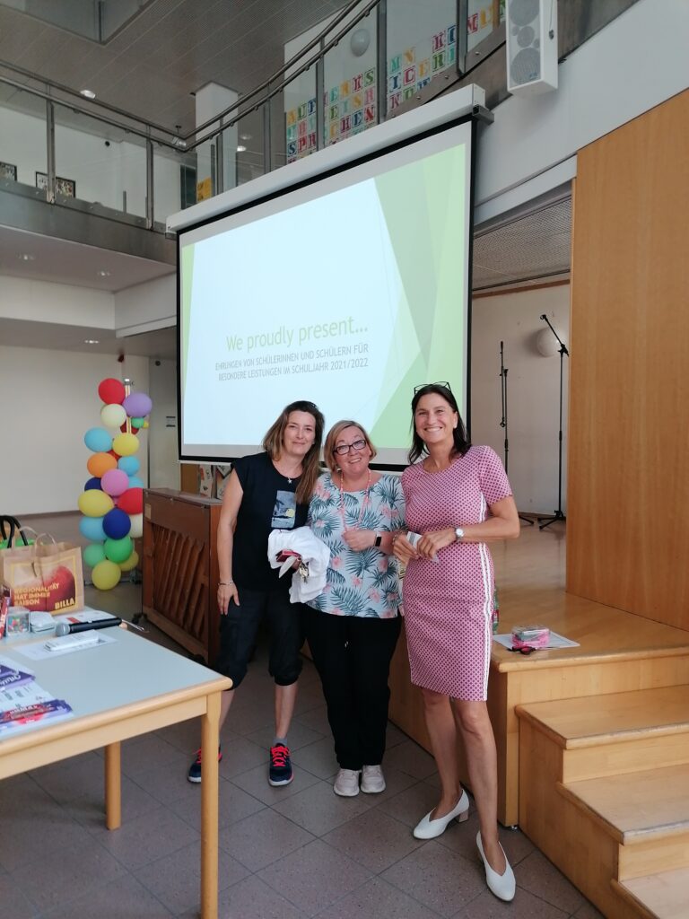 Bei perfektem Sommerwetter konnten Schüler*innen, Lehrer*innen und Eltern am Freitag, 24.6. gemeinsam das Schuljahr ausklingen lassen. Nach zwei Jahren pandemiebedingter Pause war es umso schöner, wieder den Tag des G11 – unser Schulfest – feiern zu können. Zunächst wurden Schüler*innen für ihre besonderen Leistungen, z.B. ausgezeichneter Erfolg im Jahreszeugnis, Teilnahme bei Wettbewerben, Olympiaden, etc. geehrt. Anschließend gab es Darbietungen der Schulband und der Jazzdance-Gruppe. Der „Friedensflashmob“ setzte ein klares Zeichen für Gemeinschaft und Frieden.