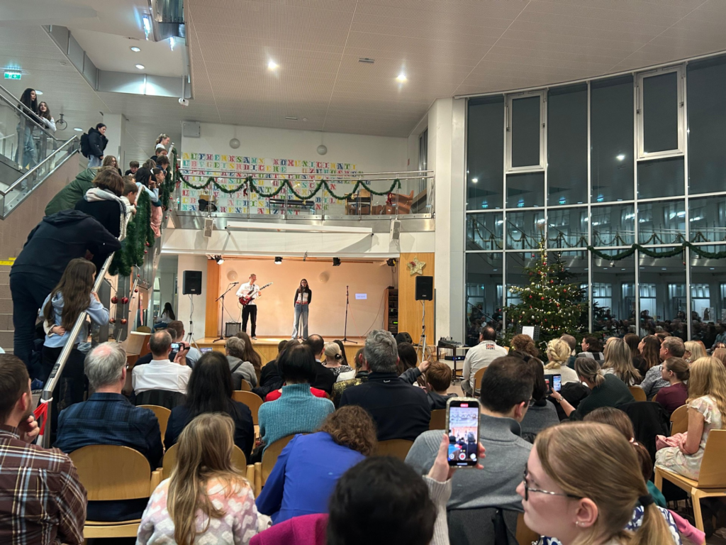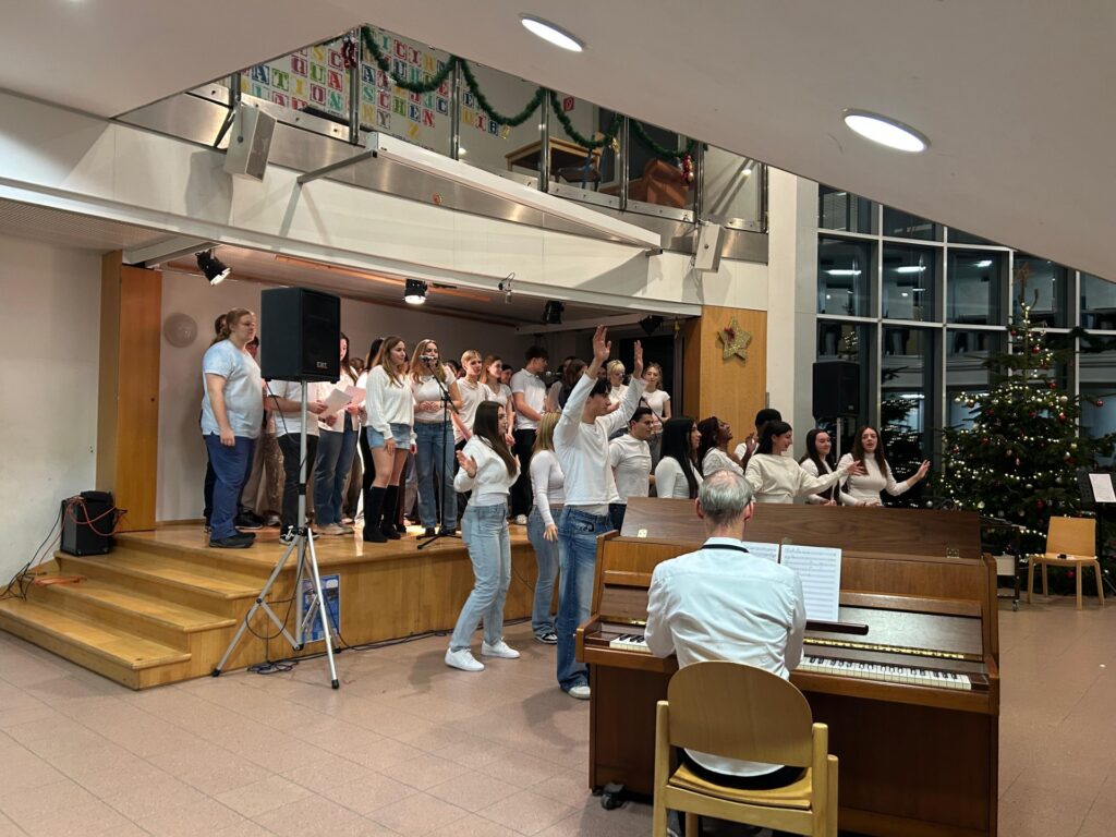 Am 04.12. hat das Projektmanagement–Team gemeinsam mit der Schüler*innenvertretung auch dieses Jahr wieder ein Benefizkonzert veranstaltet, welches ein voller Erfolg war. Wir waren sehr glücklich darüber, zahlreiche Acts bei dem Konzert dabei zu haben. Die Schulband, die Musical Gruppe, der Herr Prof. Grubenthal, Elena aus der 8B als Solosängerin, die Jazz-Dancegruppe und die Bühnenspiel-Gruppe haben lange geprobt, um an diesem Abend alles für den guten Zweck zu geben. Kulinarisch begleitet wurde die Veranstaltung von einem Snack-Buffet, das von süßen über salzigen Sachen alles anbot, was das Herz begehrt. Auch wurde selbstgemachter Schmuck von Schülerinnen verkauft. Insgesamt wurden Spenden in der Höhe von 1030€ gesammelt, die der Organisation Care-Sudanhilfe zu Gute kommen.